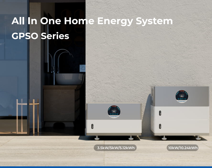Gospower 10kW All In One Home Energy System. The Gospower GPSO series all-in one energy storage system combines an inverter, MPPT solar charger, and battery. It supports a maximum of 6 units in parallel for single phase systems and 12 for three-phase systems. The battery capacity ranges from 10.24kWh to 20.48kWh with up to 4 units paralleling.