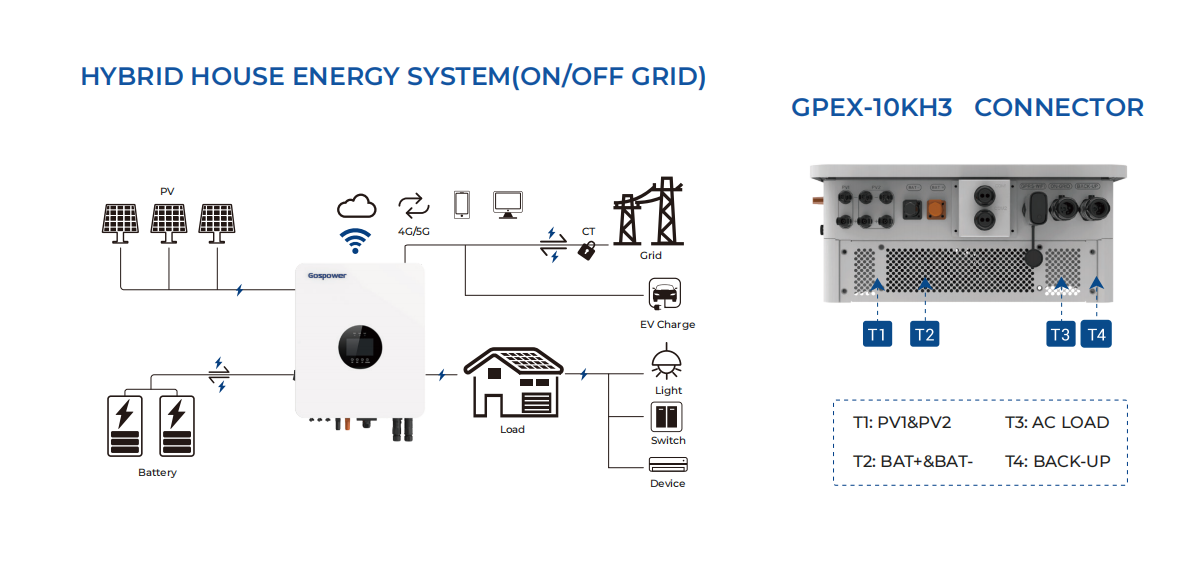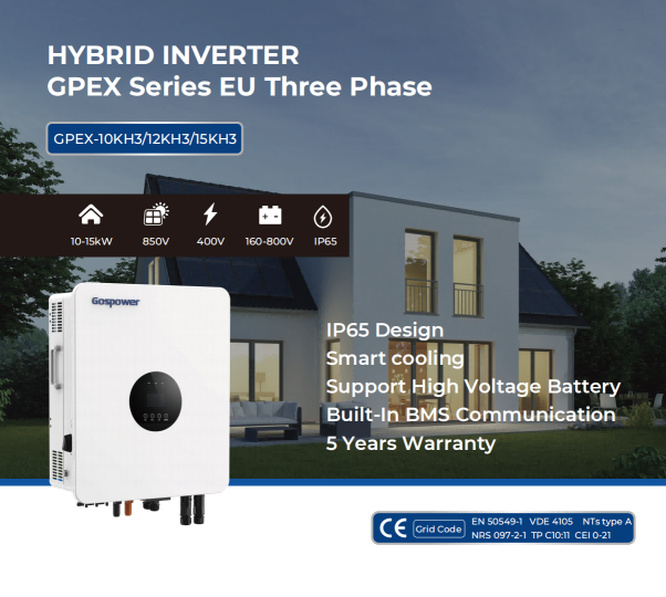 Gospower GPEX-15KH3 three phase PV inverter system can provide an uninterrupted backup power supply even during power outages.