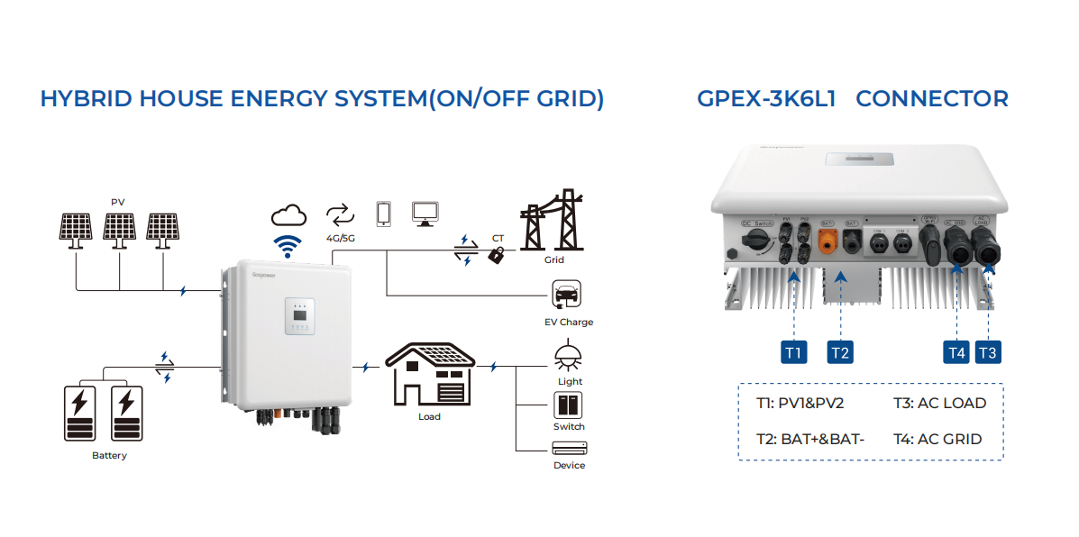 Gospower GPEX-3K6L1 hybrid inverter offers not only power and flexibility but also convenience and reliability, packaged in a smart and efficient design.